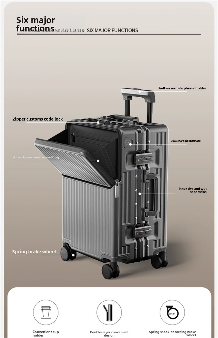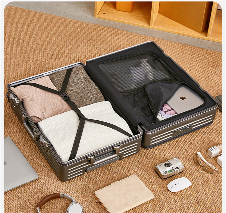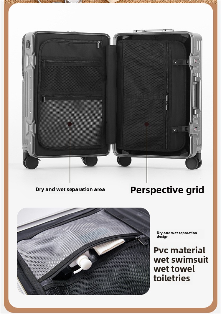 Front Opening Design: Provides quick access to frequently used items without fully opening the suitcase.