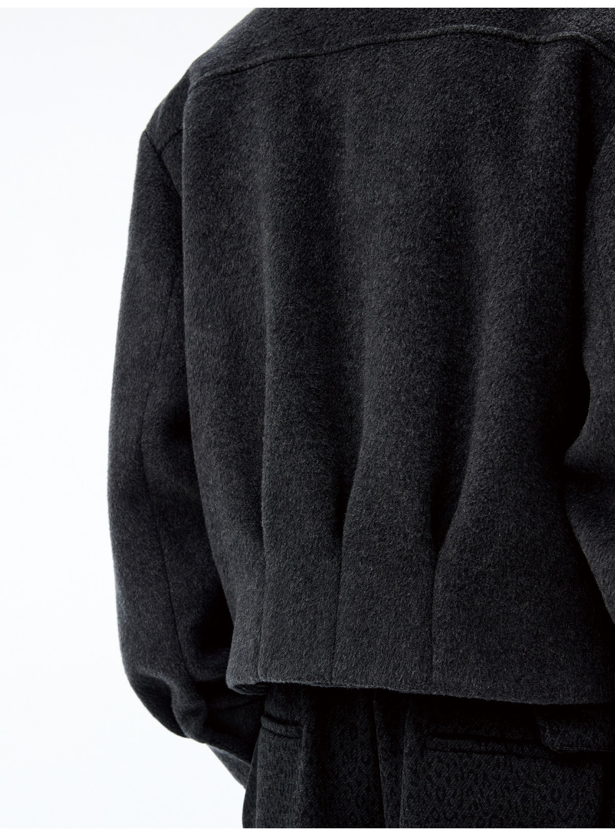 Overview Cashmere Blend: Premium wool jacket with cashmere blend for enhanced softness and warmth. Drop Shoulder Design: Modern drop shoulder fit for comfortable, relaxed styling. Half-Pocket Style: Functional half-pocket design combines utility and sleek appearance. Two-Tone Options: Available in light gray and black-gray color variants.